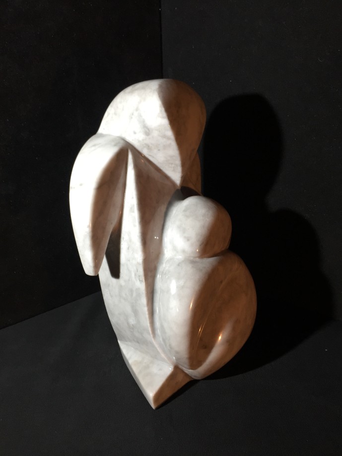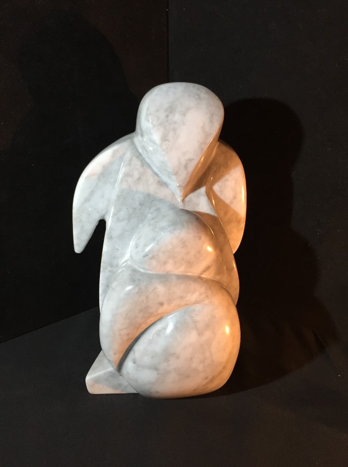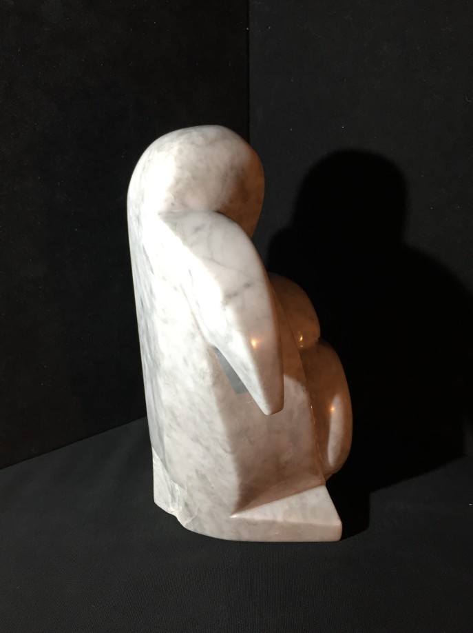 Un pingouin qui protège son petit.